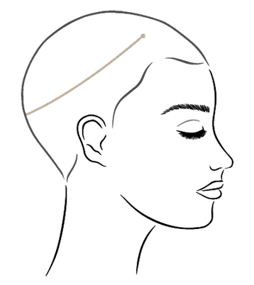 The start and stop points of One Row should sit HIGH & FORWARD; otherwise, there will be no thickness/ fullness added to their sides. It will be in a Teardrop shape that follows the head’s natural curvature.