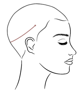 The Mini is in the back of the head with Start and Stop Points on either side of the rounds of the head. Always connecting in a TEARDROP SHAPE.