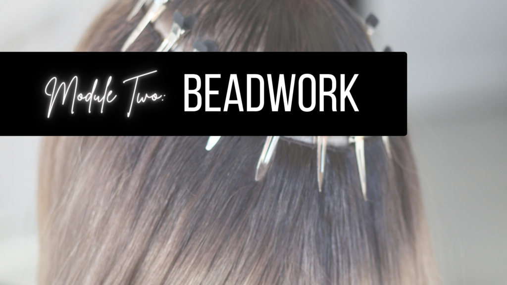 Course Content Module 2.1 Beadwork Basics Module 2.2 Checking Tension Module 2.3 Start End Bead Module 2.4 Pulling Hair Through Bead Module 2.5 Kick Out